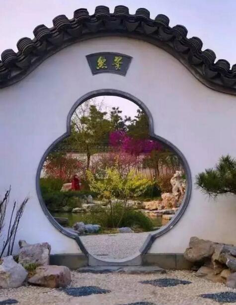 满月门即为园林中最为常见圆形门。圆形门模仿圆月而筑,是月亮崇拜的物化。给人以饱满、活泼和平衡感。